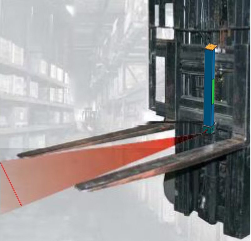 Thiết bị laser được gắn trên giá đỡ giữa của xe nâng phát ra chùm tia dẫn hướng đỏ, xanh dương hoặc xanh lá sáng và an toàn. Chùm tia ngang, song song với forklift, chỉ rõ ràng vị trí chính xác để căn chỉnh càng chính xác với pa-lét, thùng hàng hoặc các kiện hàng khác.