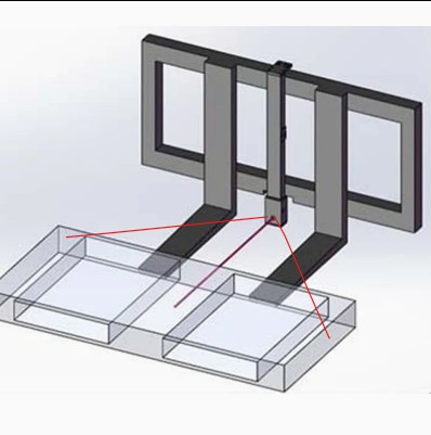 Nhìn theo đường laser để đưa càng vào đúng vị trí